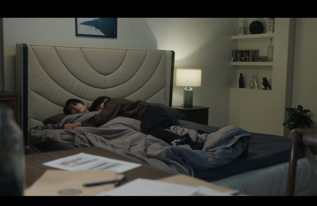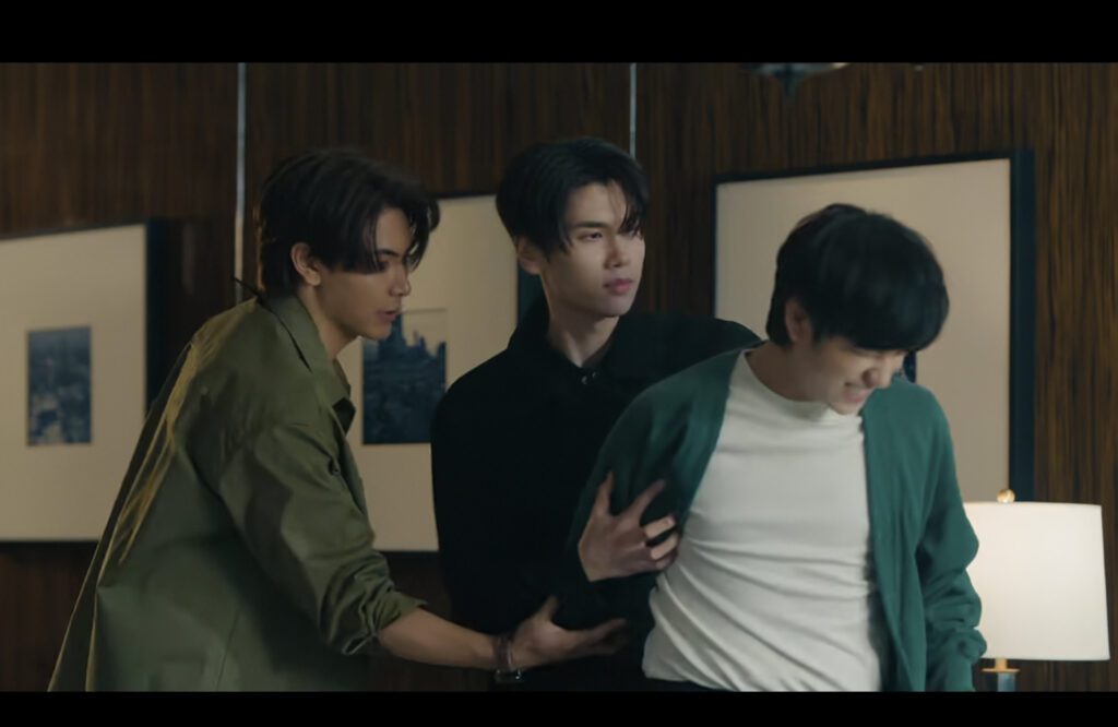 With Tar’s dead body between them, Tankhun wants to get Kamin’s LINE, not for work but because Kamin is hot. He gets his email instead. Away from the corpse, Jade also wants Kamin’s email. Kamin seems reluctant, but then gives Jade his LINE instead. Aw, it’s love.