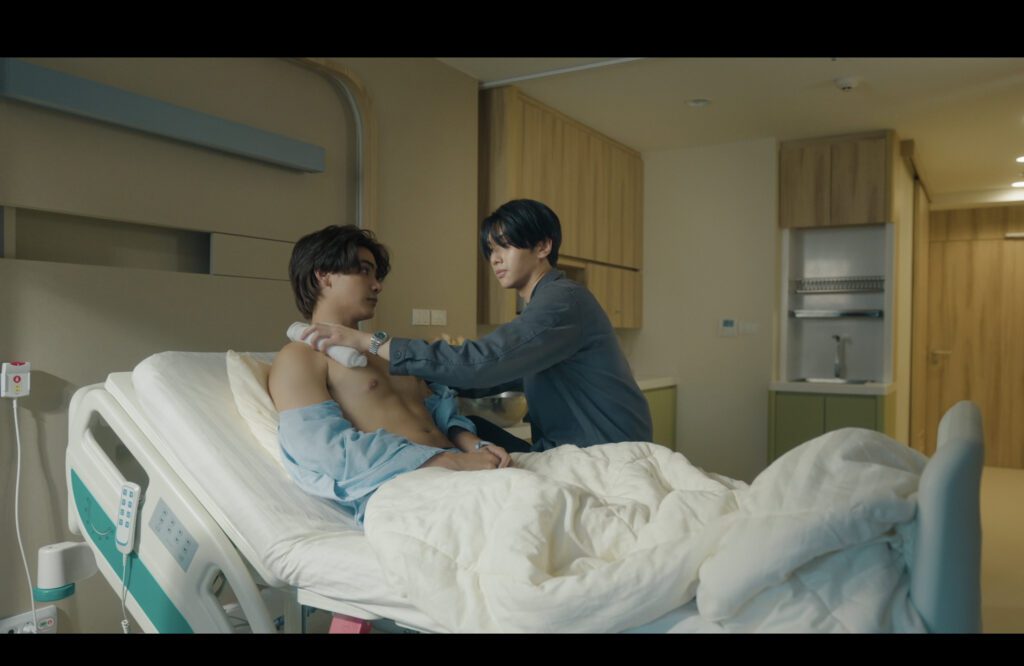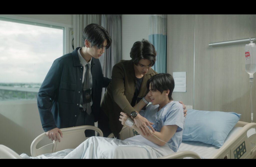 Inappropriate-flirting-Doctor-Tankhun assures Jade that his brother will be fine. Jade seems more upset that the doctor has Kamin’s number. Tankhun explains that Tonkla was crushed to death by a heavy object. Like the car he’s under.