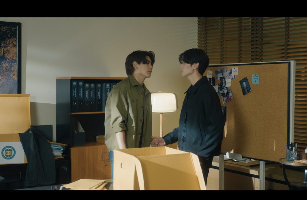 In Puth’s office, they discover that Fai was Puth’s girlfriend. Also, his name matches the owner of the room full of chemicals. So, he must be getting revenge for her. Tankhun thinks that taking the body with him is a step too far. Isn’t it?