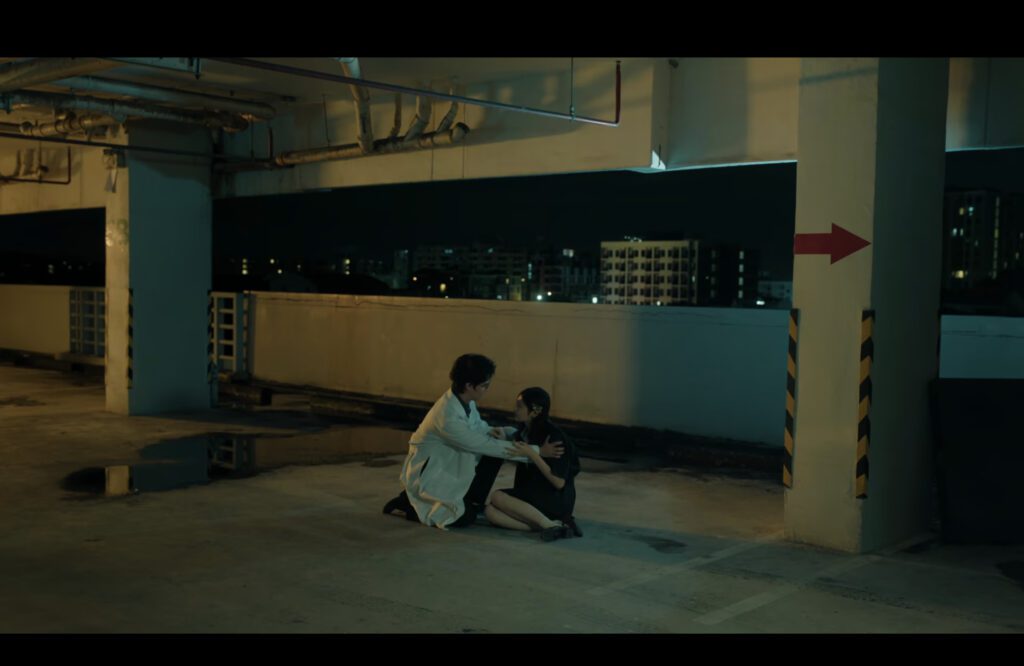 But they don’t stay apart. They meet at a place near Tonkla’s dorm where they suspect drugs are being exchanged. Some random woman wandering around helpfully gives them the name of the person using the place.