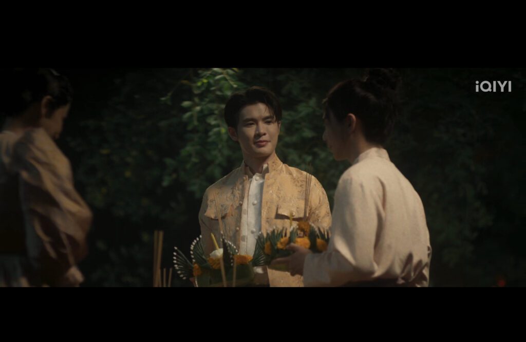 Yai claims that if their krathongs float side by side for long enough, it means they will be long-lasting lovers. Kaew thinks it would be the natural result of releasing them together. Also, they’re both men, whether krathongs float together or not.