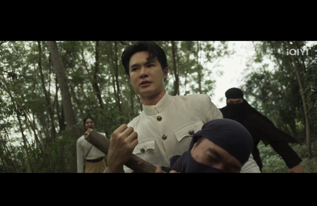 Back in the 1910’s, Yai is fine! After getting slashed, he keeps fighting back. He recognizes one of the masked attackers as Prom and tells him not to disappoint his father any further. Saen shows up to help, allowing Yai and Kaew to escape.