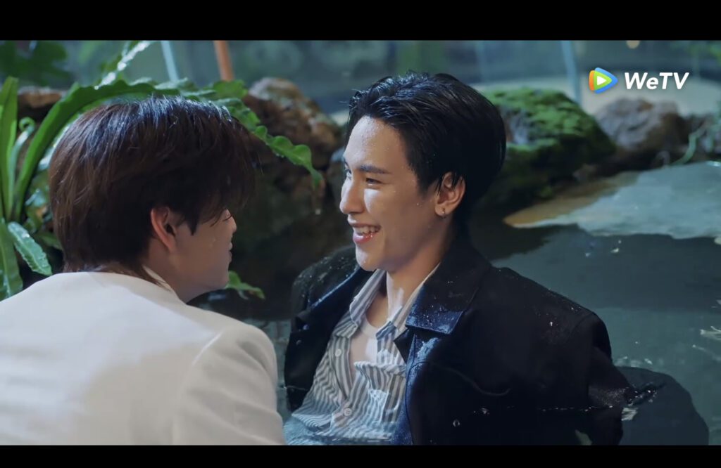 Pai falls into the pond while helping find the keys, and Tim goes in after him. Then they’re splashing each other and dragging each other down.