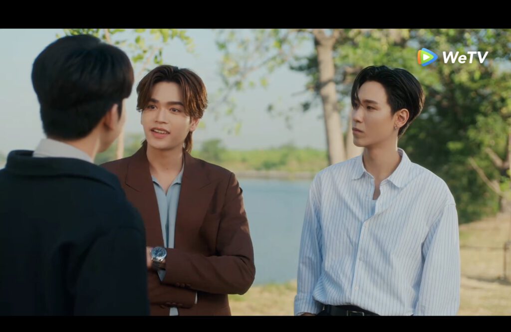 Tim, Pai, and Kuea meet, and Tim is so jealous that Pai has to drag him away, again. Tim denies he’s jealous until Pai offers to kiss him if he admits it, and Tim says he wants to punch Kuea.