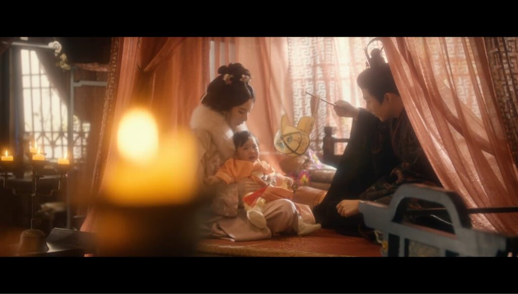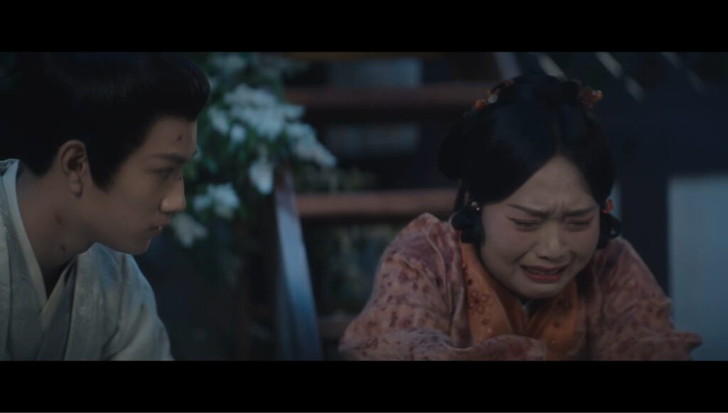 Once the doctor leaves, she cries and hugs Wei Shao. He tells her not to blame herself, but she does. Besides not helping him restore the Wei family, she’s taken Liang from him and Tao.